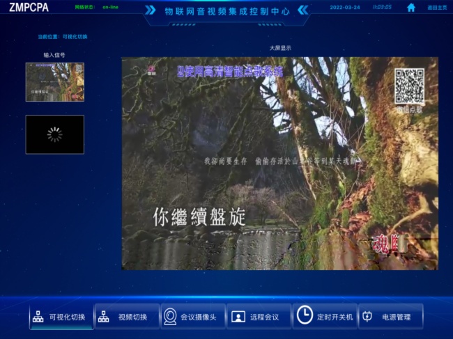 5)能够控制投影机,进行开/ 关机、输入切换等功能,并能够控制电动吊架、屏幕,实现上升、停止、下降等功能;