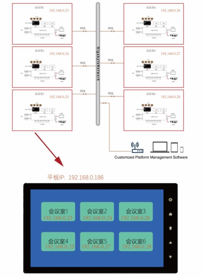 实现多会议室的分区和统一控制