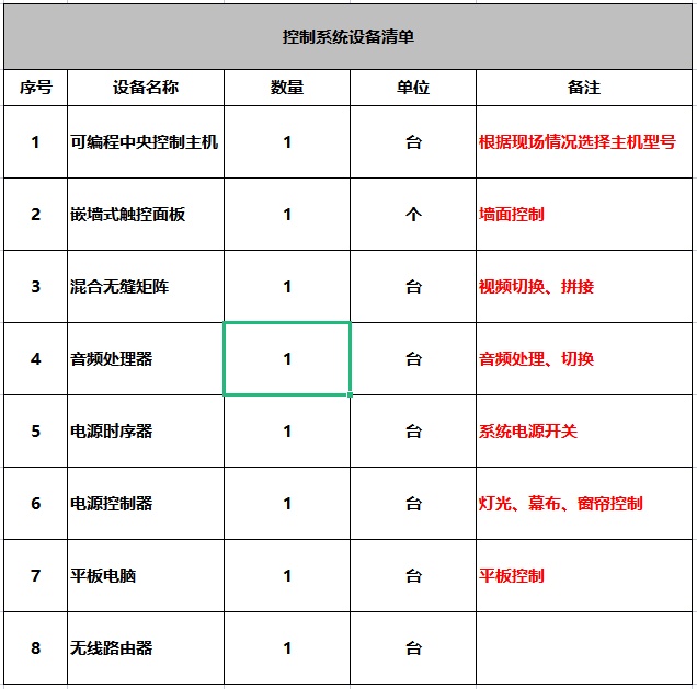 控制系统能够根据用户的应用需求,适时控制各设备的开关,功能的切换,联动相关设备动作与应用 场景进行智能,协调工作,达到最佳的应用效果。