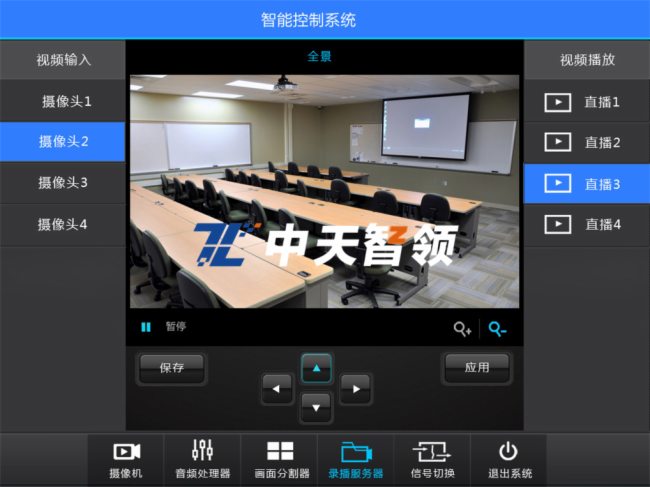 执行会议日常设备稳定控制,模式切换,声音灯光调节,LED大屏控制,会议视频录播存储控制,采取开发统一控制平台,以触摸式一体机为载体,融合单兵执法系统,LED显示系统,服务器KVM调度系统,视频预览系统,监控系统,音频控制系统,灯光温度控制系统等集成一个平台软件一个操作界面,实现快速,简单方便的保障会议正常高效进行;统一控制平台同时可设置权限,上下级管理,用户管理,密码账户登录等;