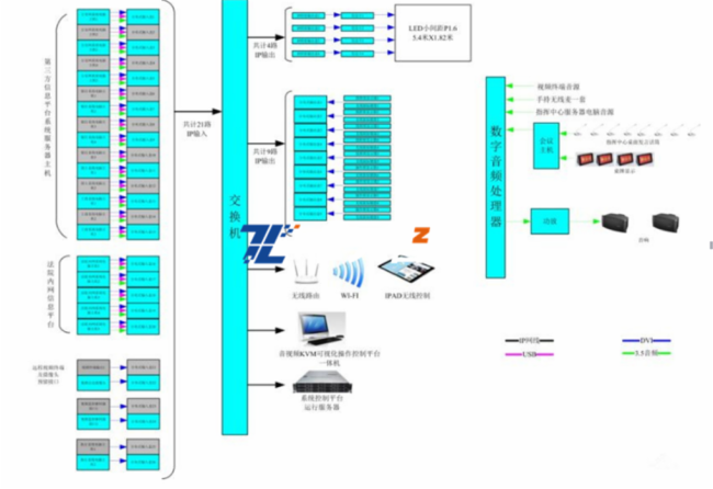 设计LED小间距 P1.25显示屏,显示分辨率为9600*2700,显示面积为:12m*3.375m;主要用于:日常会议显示、多方会商视频会议、单兵现场指挥、执行应用数据显示、执行指挥平台联动等视频显示功能;保证能够清晰显示,各类视频信号图像;
