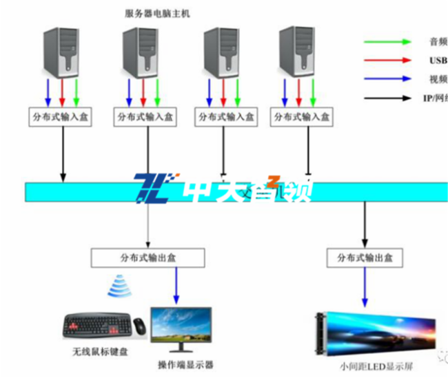 分布式系统支持多种类型信号输入和输出,例如常见的HDMI信号, DVI信号,VGA信号等等,超强的信号类型兼容能力使该系统具备异常强大的信号切换功能。该系统采用的网络数据流传输技术,因此在信号切换过程快速平滑,无黑屏画面出现,满足未来的需求。使用时,只需在已经编写好控制程序的ipad、windows等平板上操作即可把各种不同的信号如dvd、手提电脑、摄像机、远端画面等等这些信号切换到拼接大屏、远程终端上。