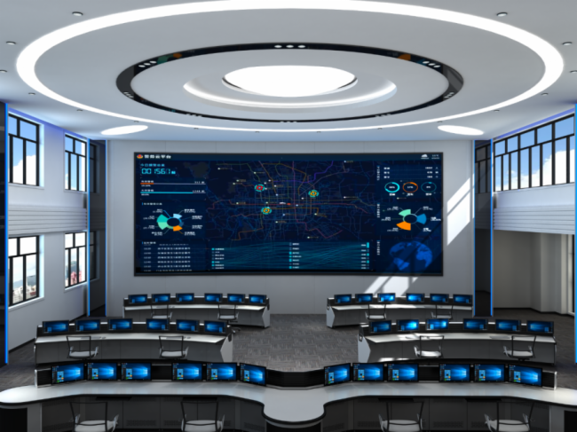 指挥大厅是指挥中心的核心组成部分,工作人员在此实现对接入的各类信息的汇聚、监控、分析,实现对全天候的监控,以及对各类突发事件的处置调度。