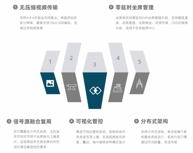 ● 人机分离,远程操控机房主机,零延时传输视频、控制信号,主机集中管理,减少指挥中心噪音