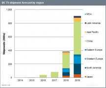 根据IHS表示,虽然当前8K电视出货还没真正起步,但随着8K 电视广播在2020年日本东京奥运会的开播,全球电视分辨率将出现新一轮的拉升。IHS预测,全球8K超高清(UHD)分辨率(7680×4320pixe...