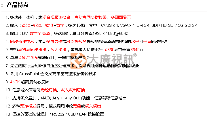 LED显示屏维修 > LED产品中心 > 画面拼接器 > 产品详细