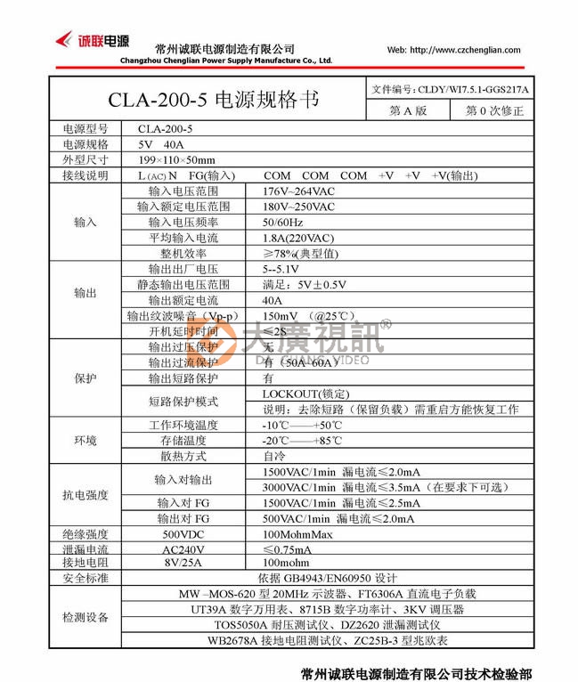 诚联开光电源5V-40A 200W...